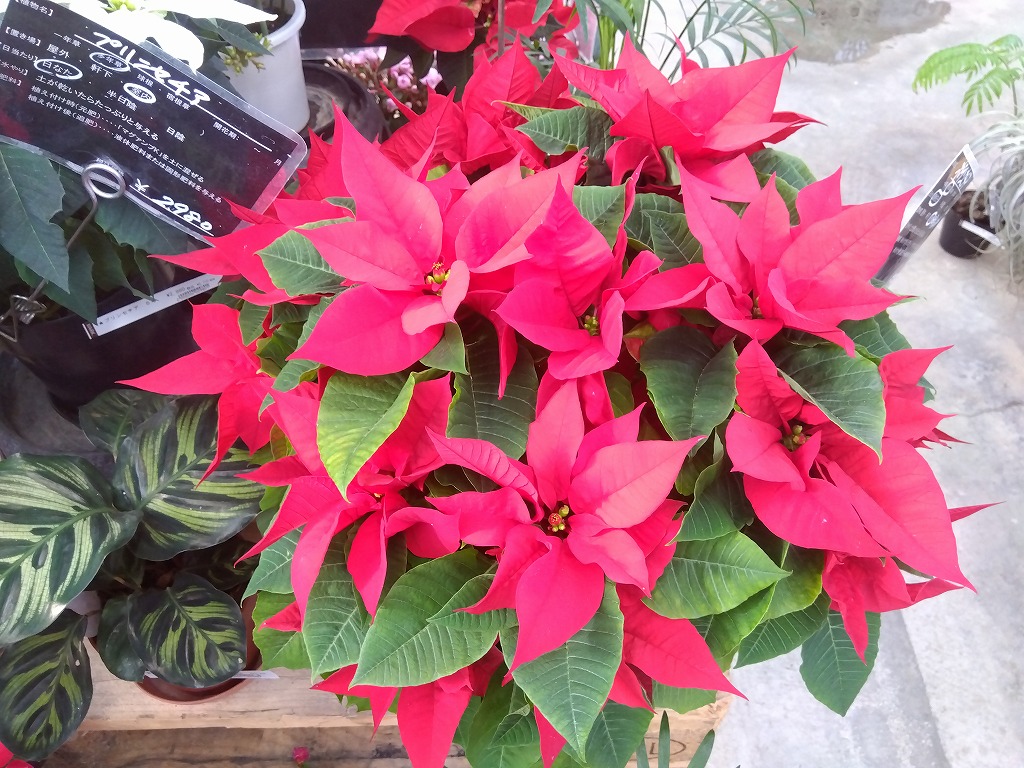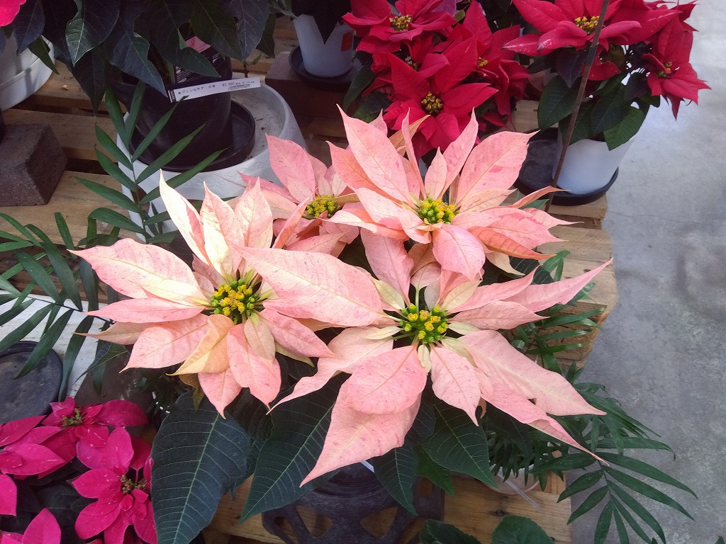 先日、某所でいろいろな色のポインセチアを見かけました。