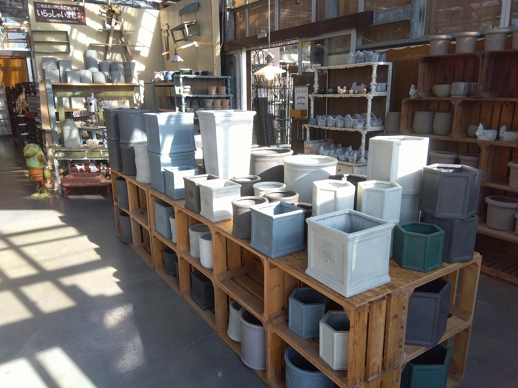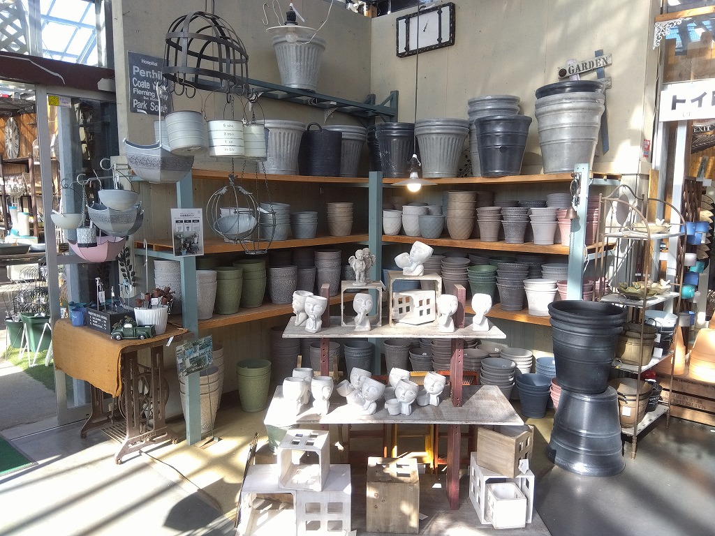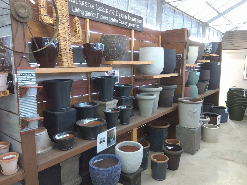 こちらのショップはハーブや多肉植物をはじめ、それらを飾るプランターなどの品揃えも多く、