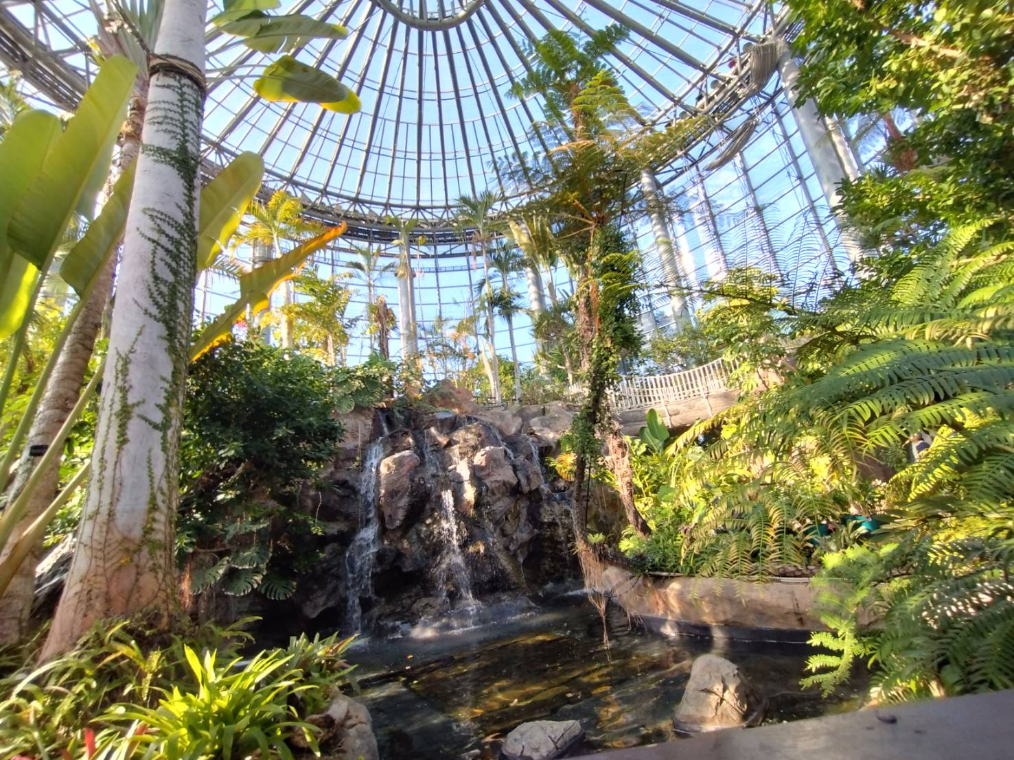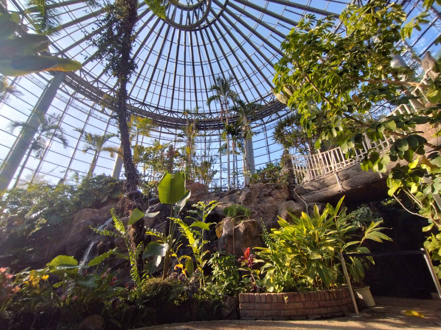 通路を進むと温室棟が現れ、亜熱帯の植物が大迫力で迎えます。