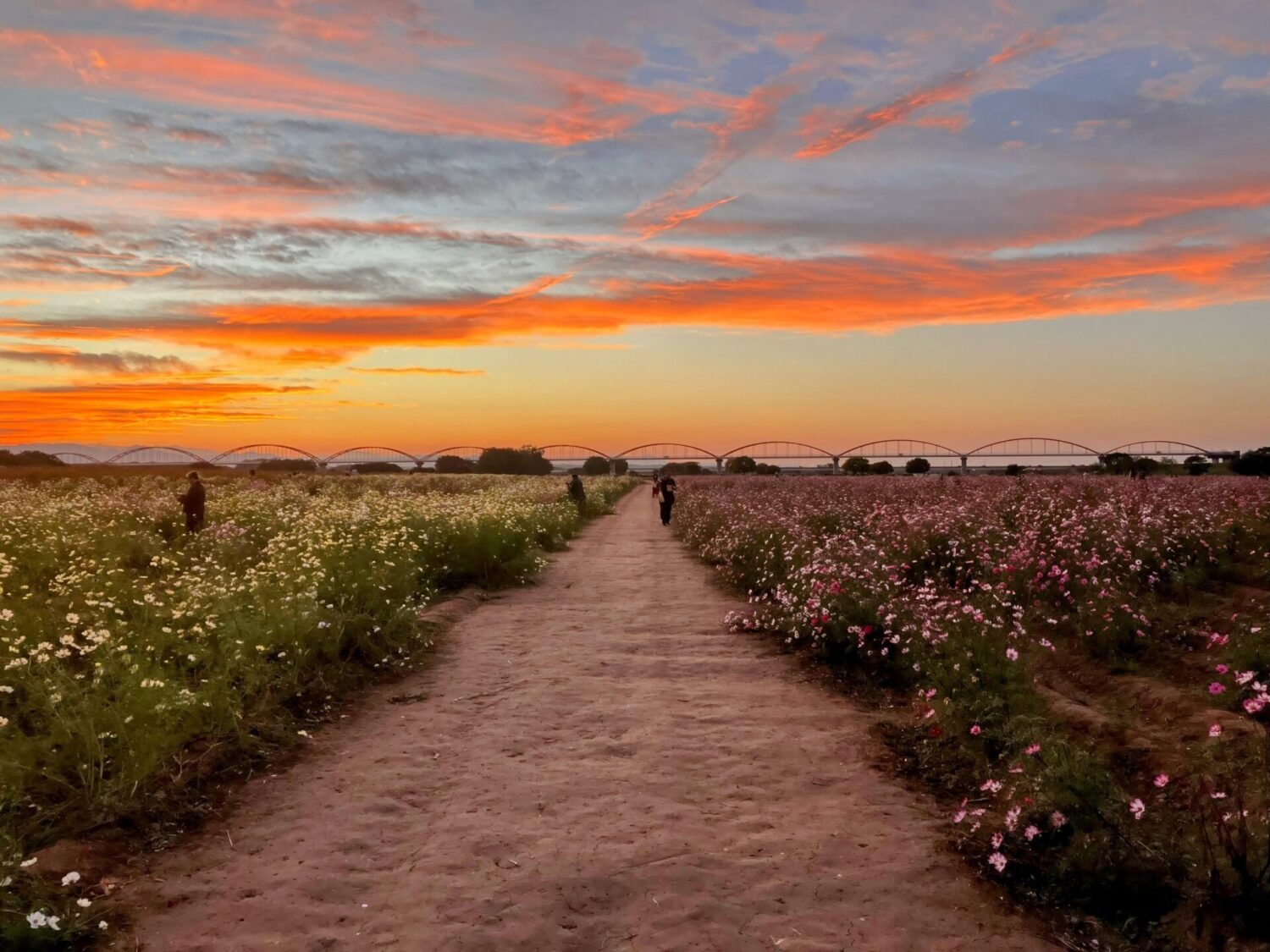 コスモス畑には、ちょっと日が傾いたころに行きました。