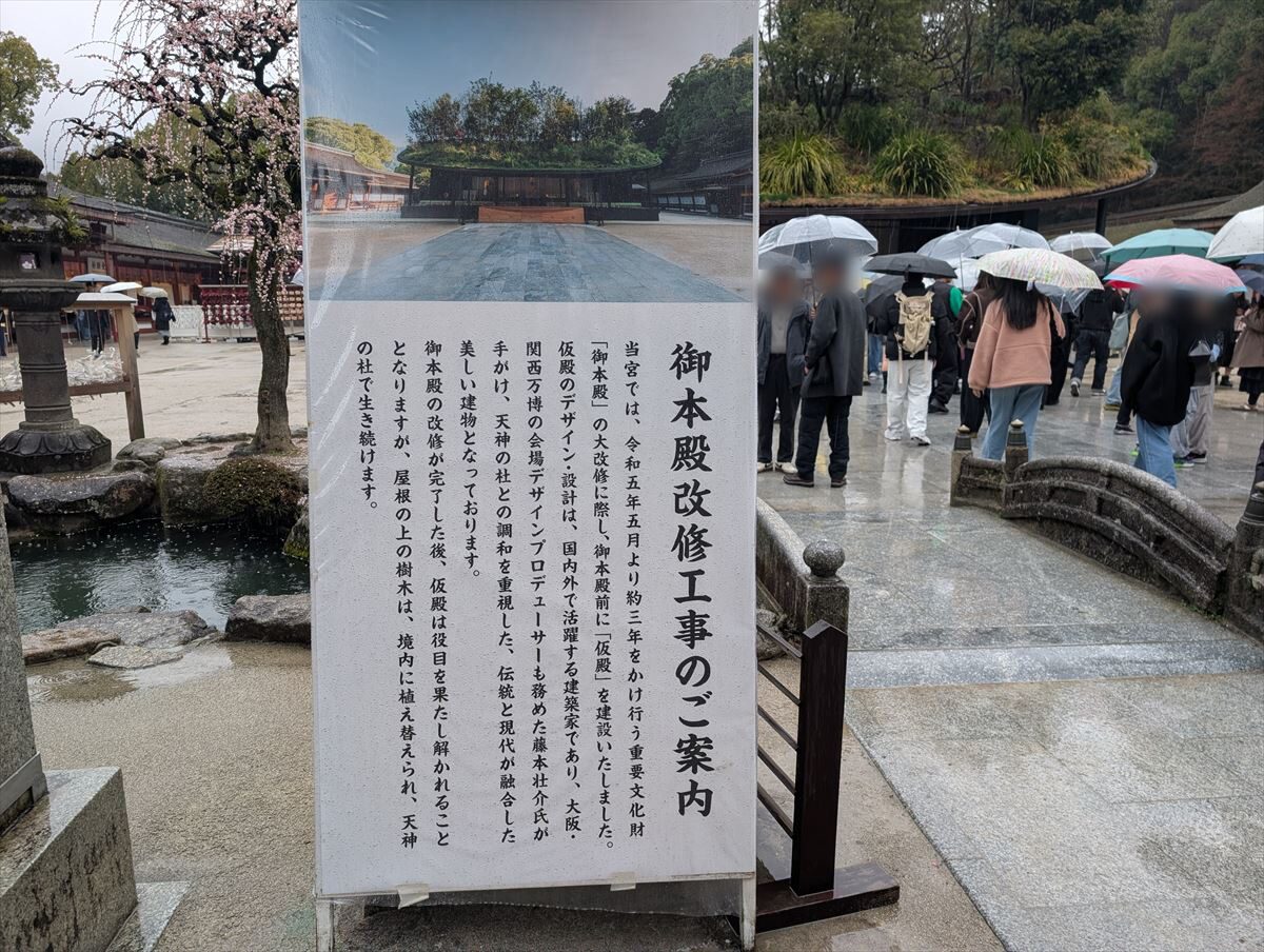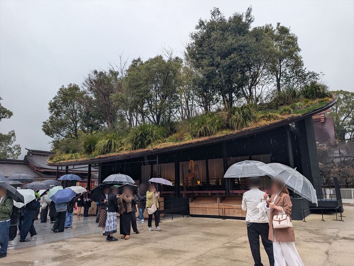 が、御本殿は124年ぶりの大改修真っ只中。2026年5月までは「仮殿」での参拝