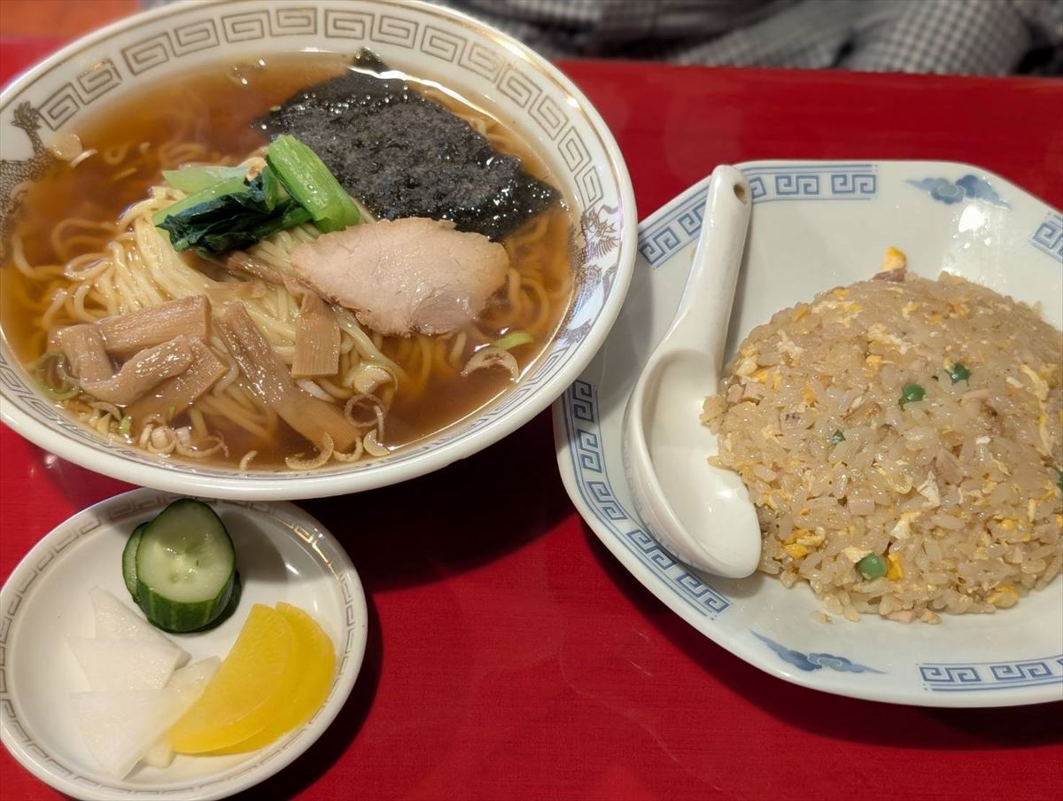 ラーメンと半チャーハン、餃子を半分いただきました。