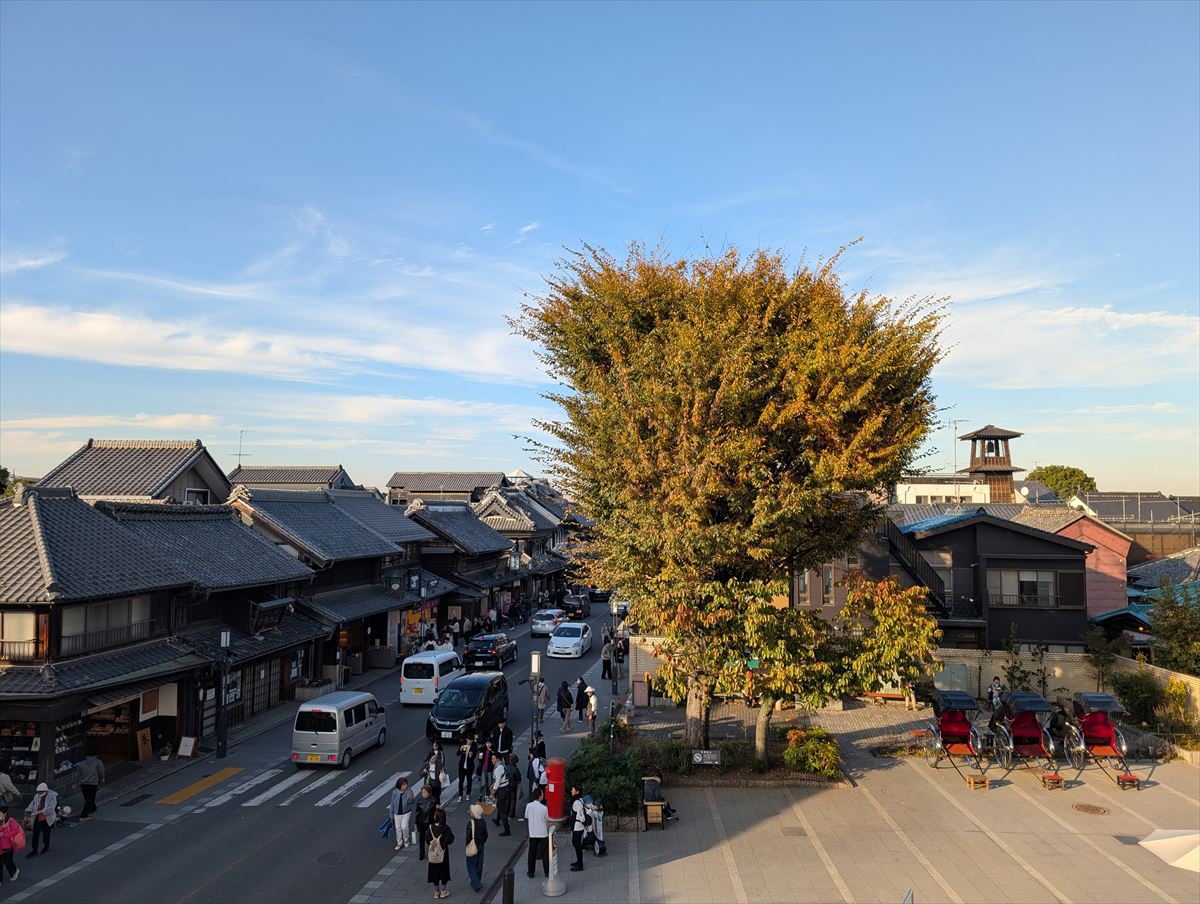 2階の展望デッキからは蔵造りの街並みが一望できます。