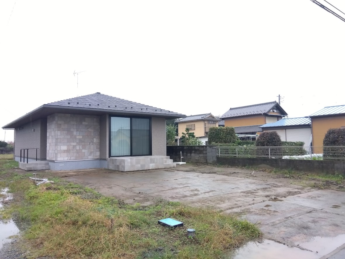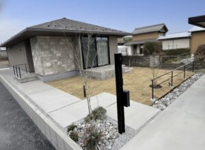 ・平屋の外観を引き立てる、シンプルで景観を損なわない外構計画を実施。