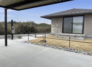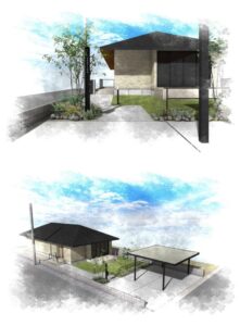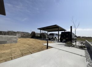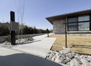 植栽との調和:建物との一体感を重視し、安価に見えないよう構成。「建物を引き立てる」としての外構要素+植栽で全体を整える。