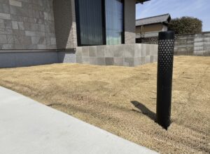 シンプルを基調としながら、門柱・フェンス・照明といった小さな要素の配置とバランスで存在感を整え、建物を引き立てる外構をかたちにしました。